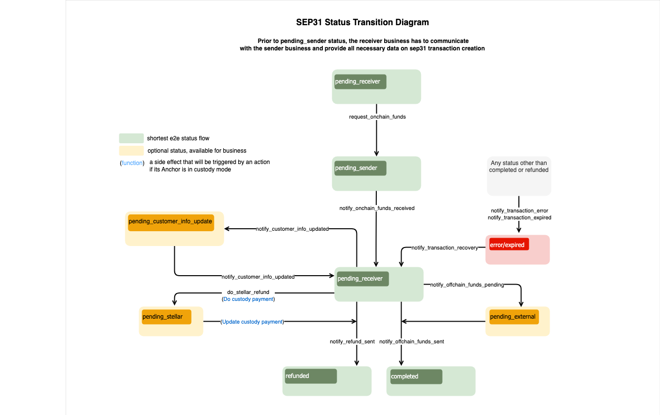 SEP-31 Transactions should initially be in the pending_receiver status. To request funds from the Sending Anchor, the Receiving Anchor should change the transaction status to pending_sender by making the following RPC request: